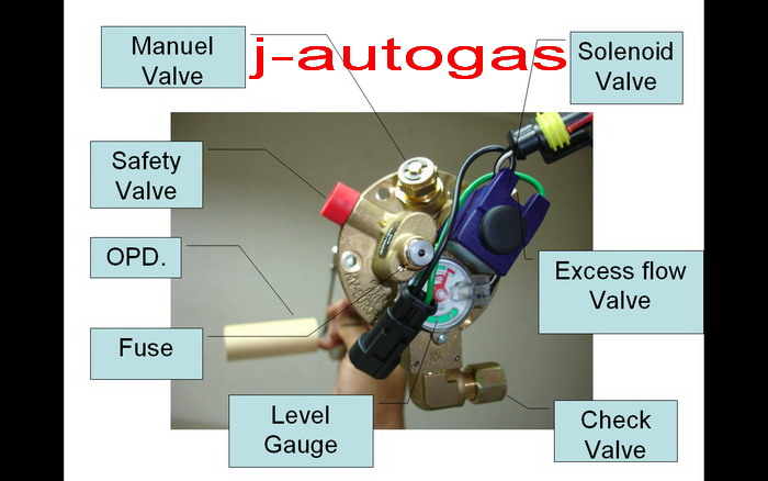 1. safety valve ทำหน้าที่ระบายแรงดันในถังแก๊ส หากมีแรงดันที่สูงผิดปกติ คือสูงกว่าแรงดันที่ กำหนดไว้ วาล์วตัวนี้จะปล่อยแรงดันแก๊ส ทิ้งเพื่อ ลดแรงดันในถังแก๊ส ลง